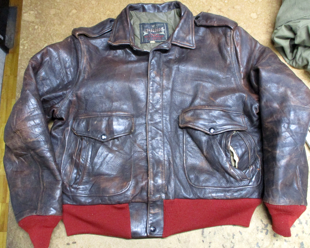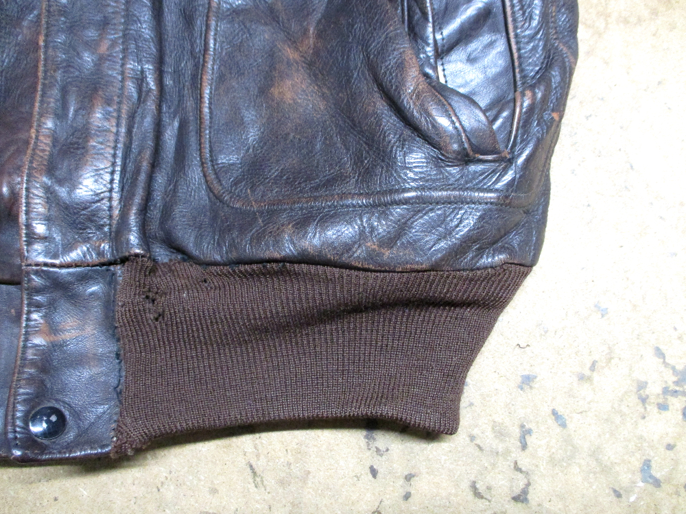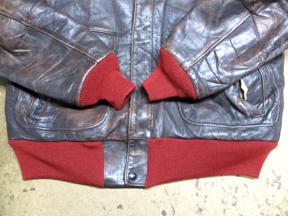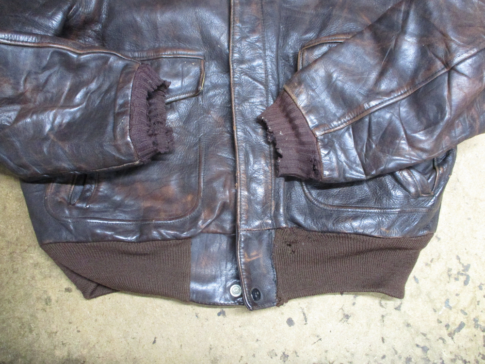 13枚目は両袖と腰回りを新しいリブニットを取り付けたレザージャケットの写真です。