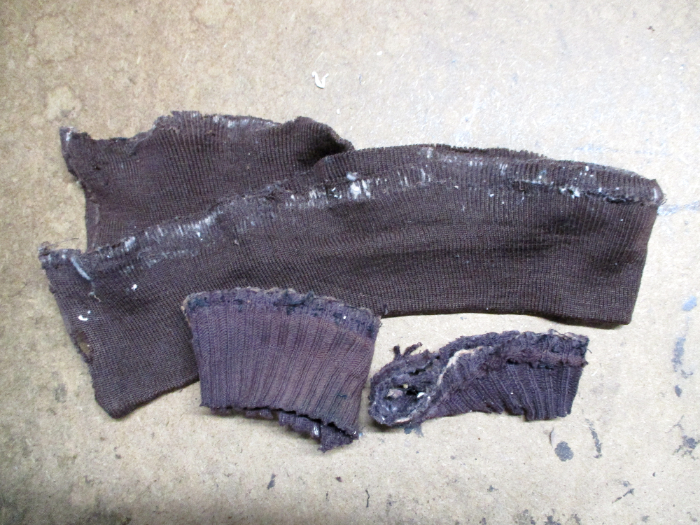 3枚目はボロボロの両袖と腰回りのリブニットの写真です。