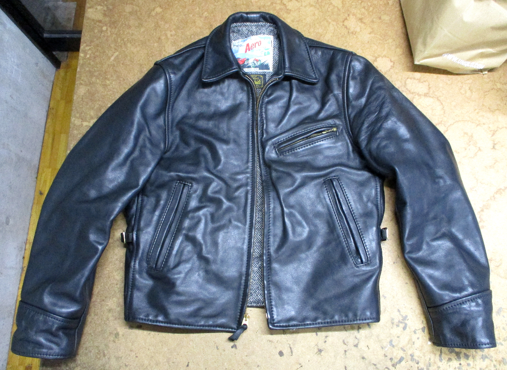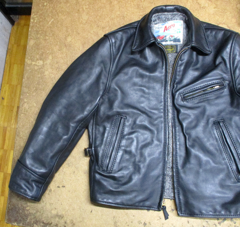 1枚目は来店されたお客さんの長い袖丈を短くしていく前のエアロレザーのジャケットです。