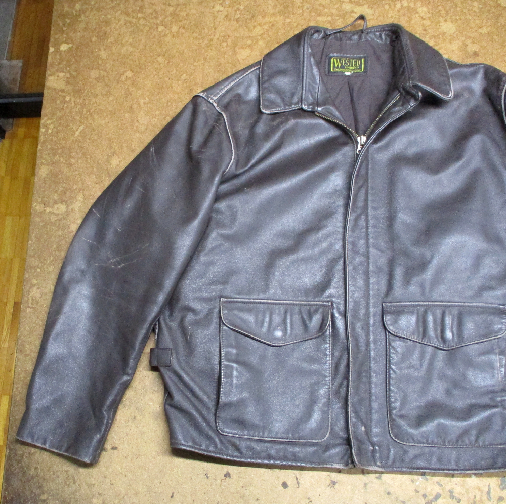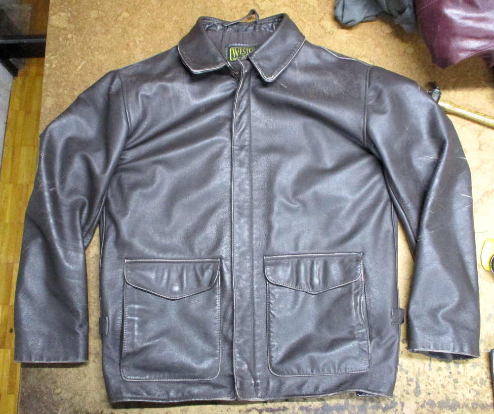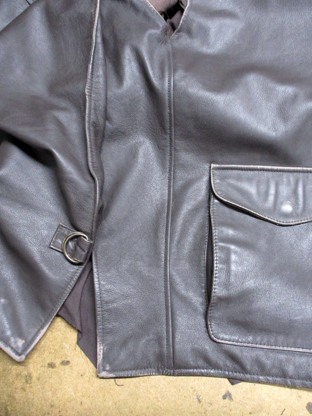 1枚目は岩手県からの郵送のお客さんのサイズを小さくしていく前のレザージャケットです。