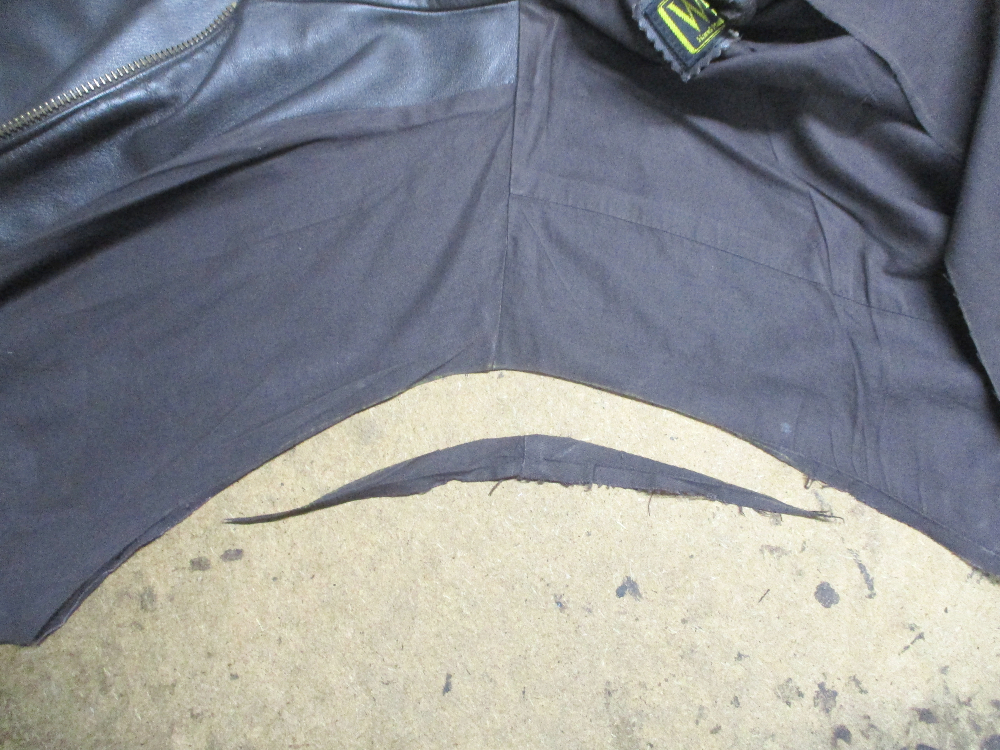 11枚目は胴体の脇から裾のサイドのレザーをカットした写真です。