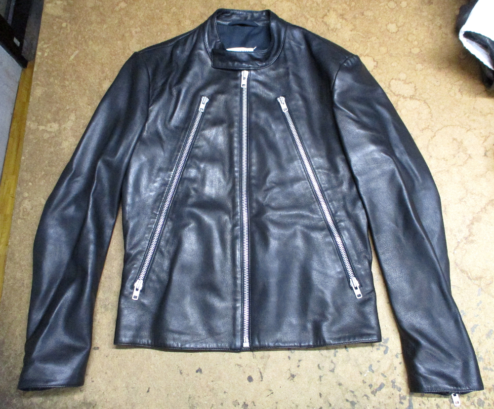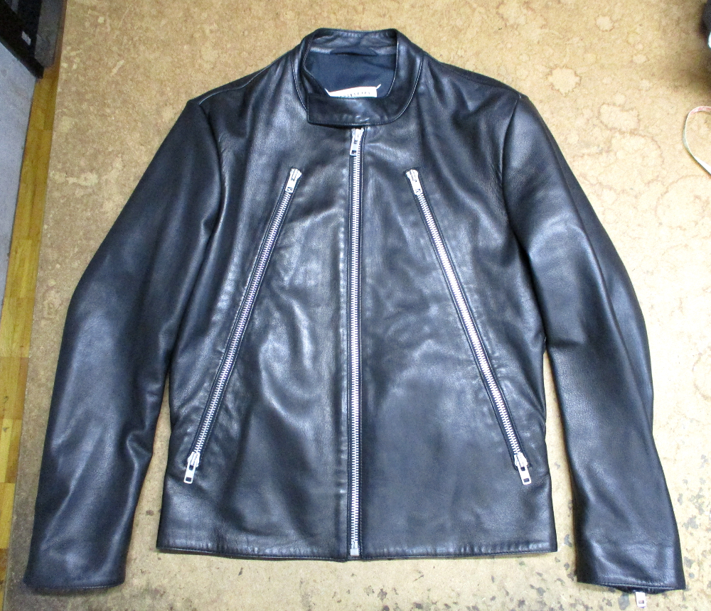 1枚目は東京都からの郵送のお客さんの長い袖丈を短くしていく前のレザージャケットです。