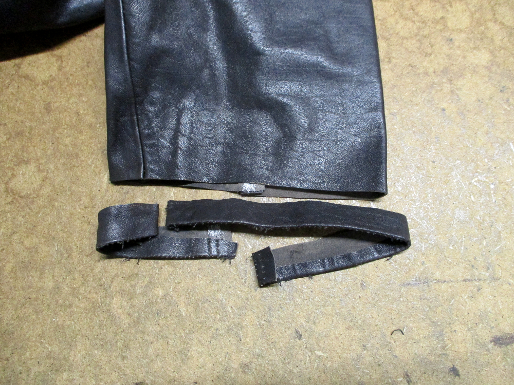 4枚目は袖のパーツの袖先側の上の部分のレザーをカットした写真です。
