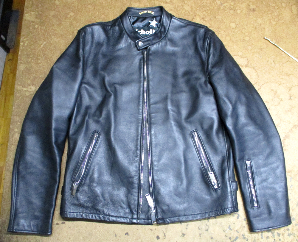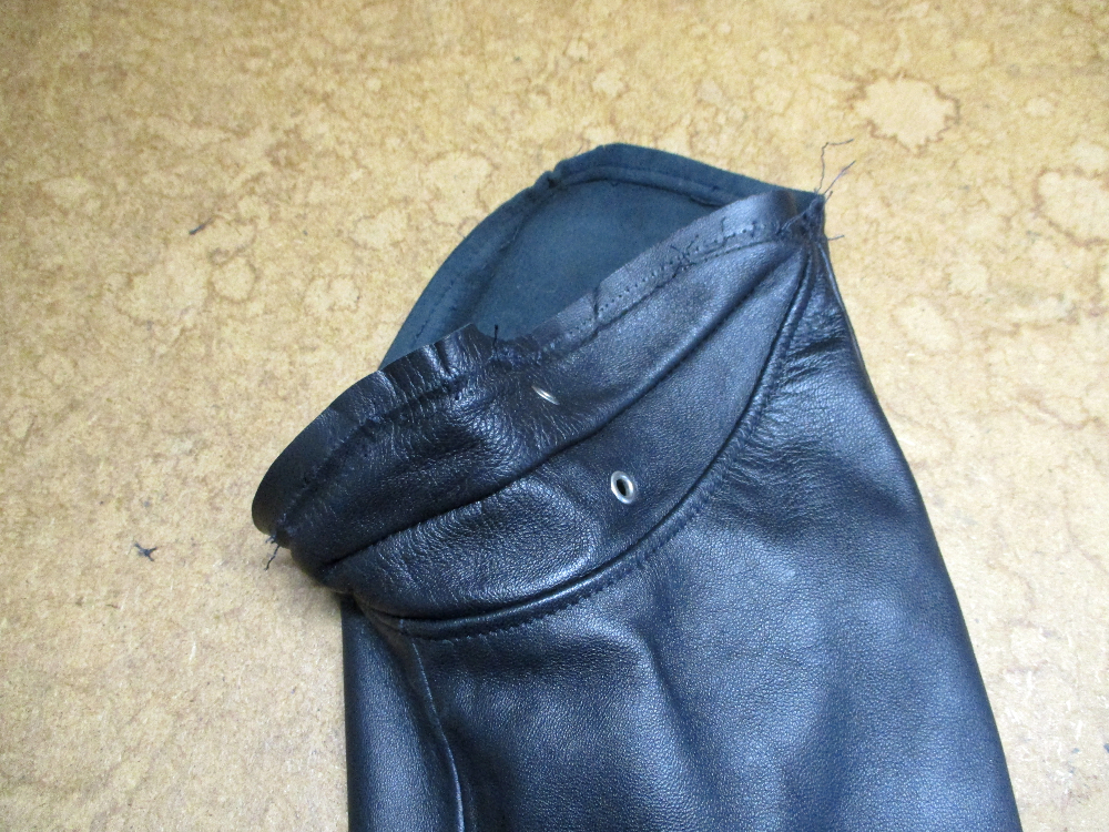 1枚目は大阪府からの郵送のお客さんの長い袖丈を短くしていく前のレザージャケットです。