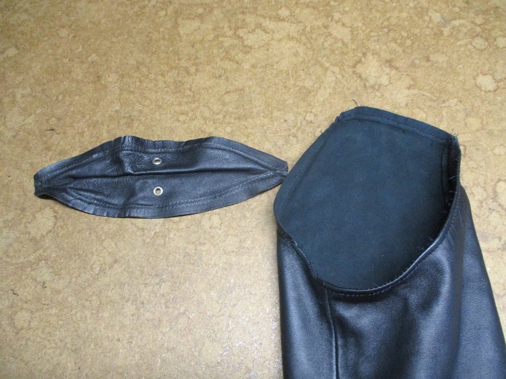 4枚目は脇の別パーツを外して袖山から袖丈のレザーをカットして短くしていきます。