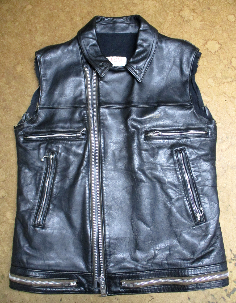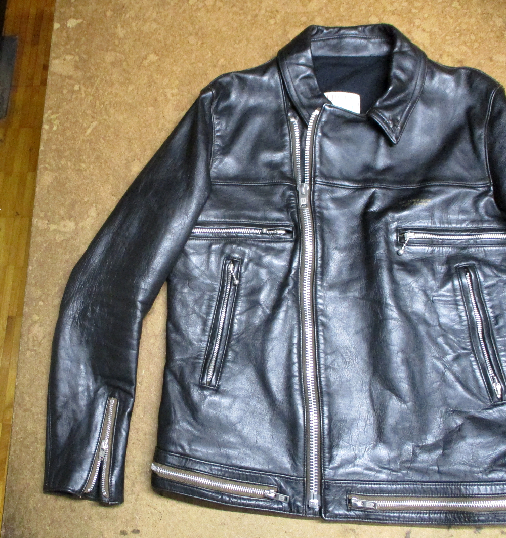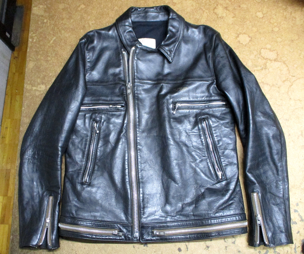 1枚目は来店されたお客さんの袖丈を短くしていく前のレザージャケットです。