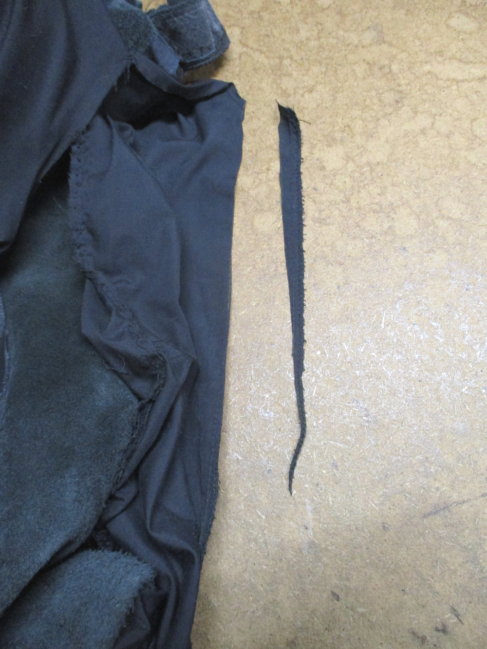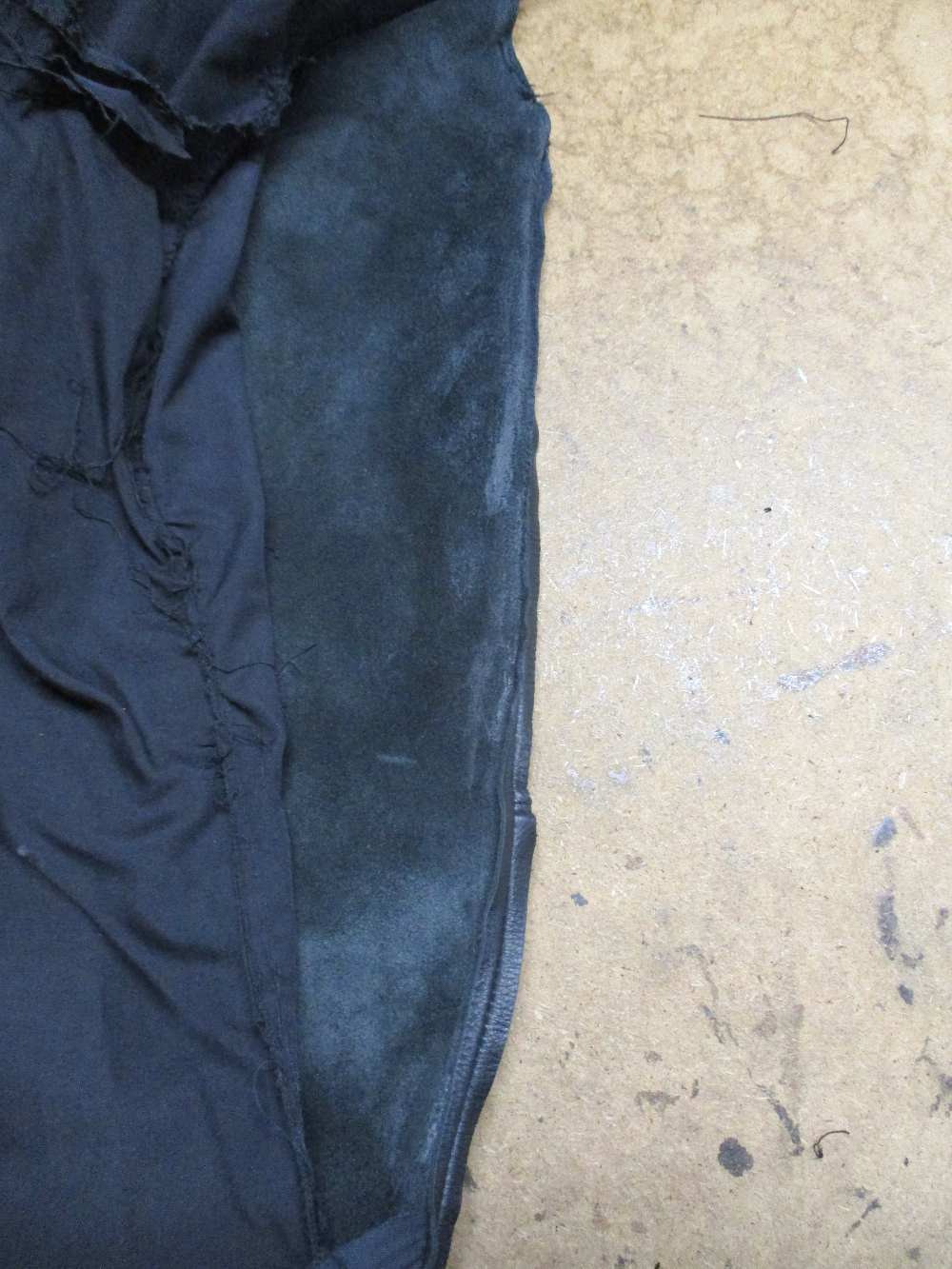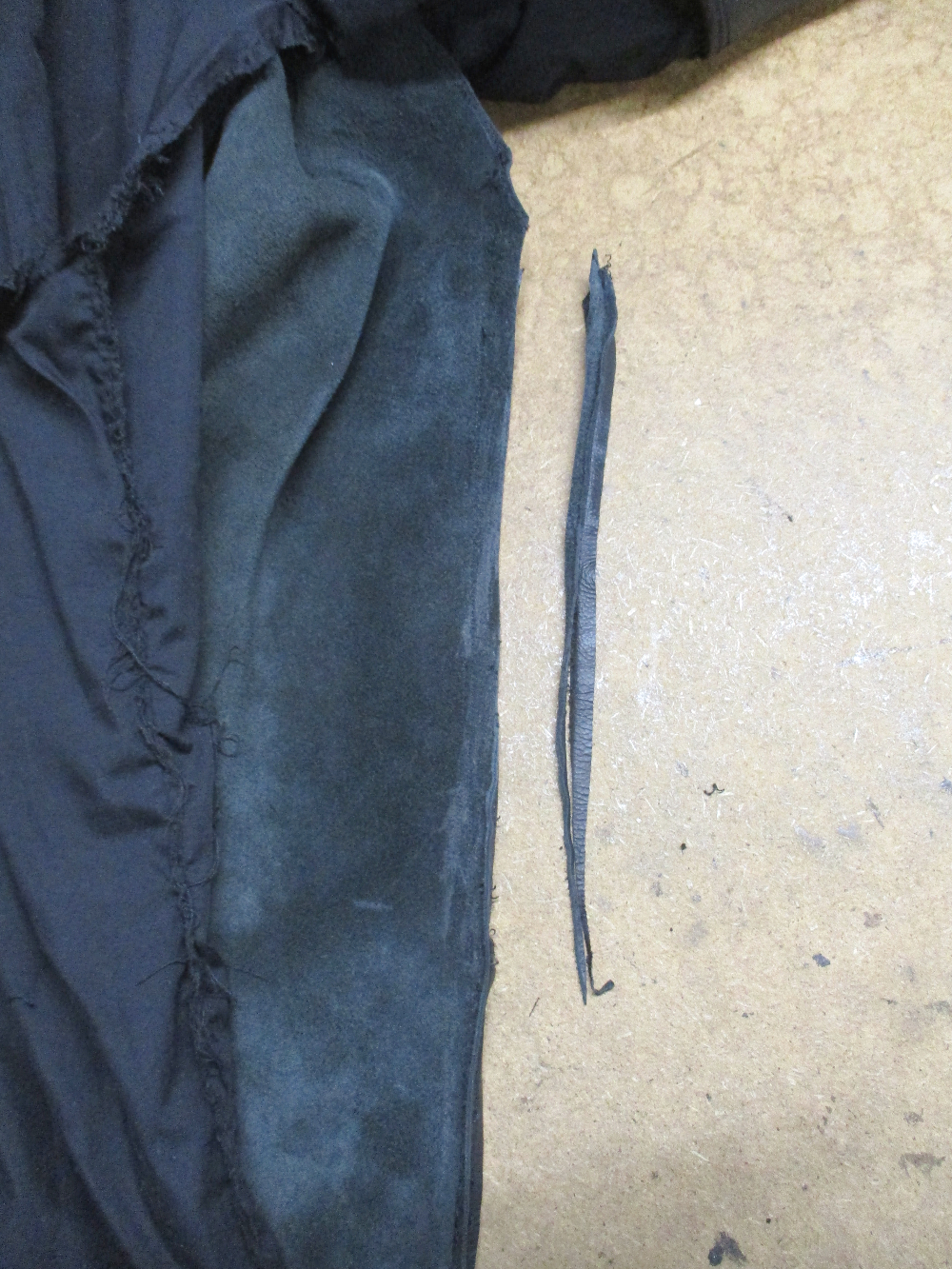 10枚目は胴体の脇から裾のサイドのレザーをカットした写真です。