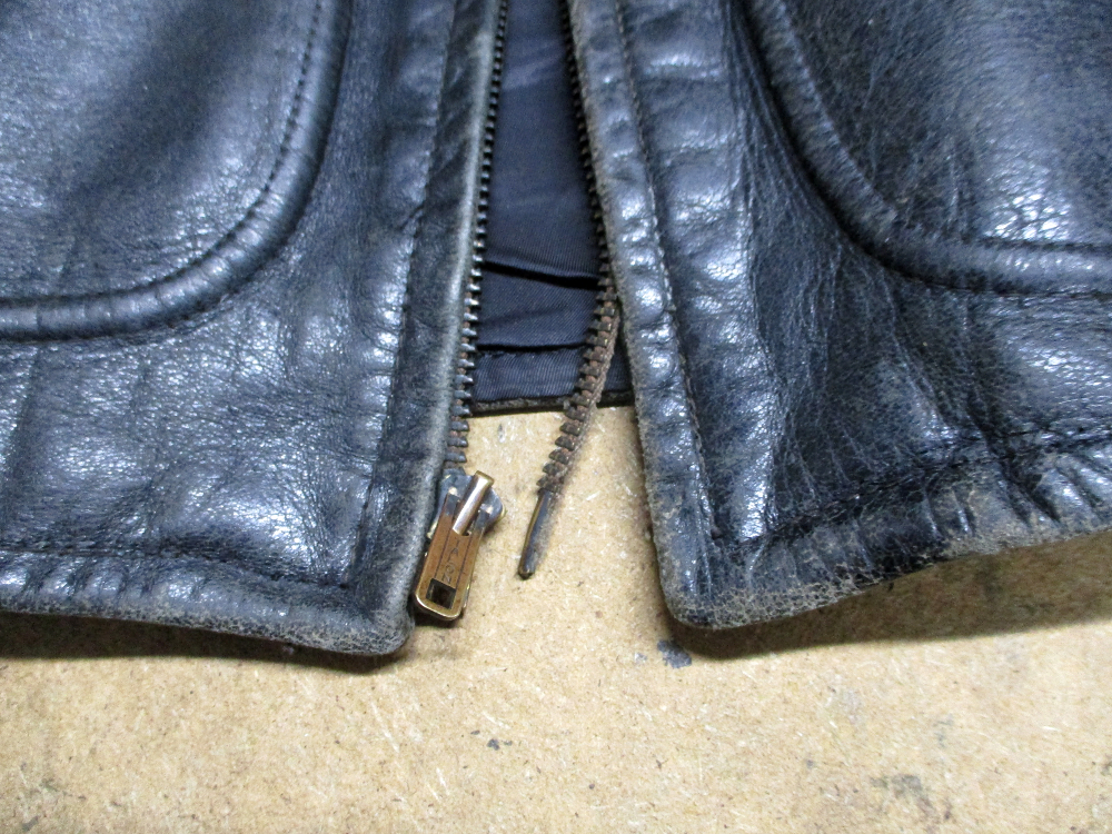 1枚目は三重県からの洋右層のお客さんのフロントのファスナーが壊れたレザージャケットです。