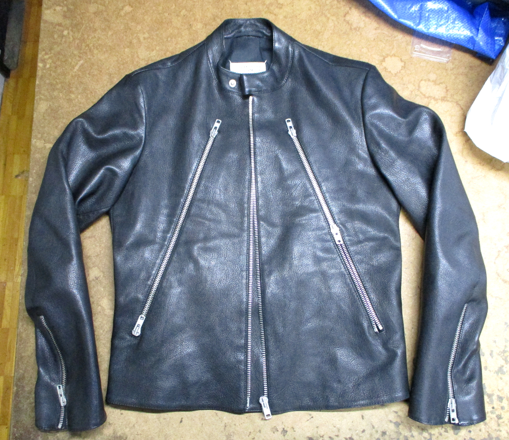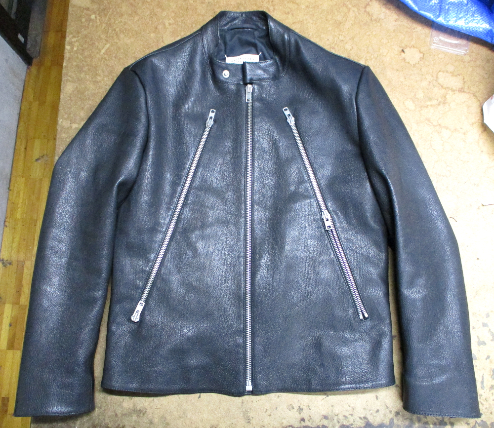 1枚目は長い袖丈を短くしていく前のレザージャケットです。