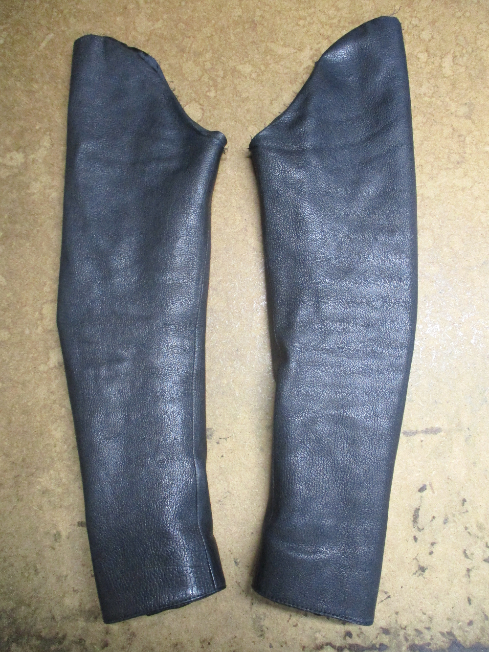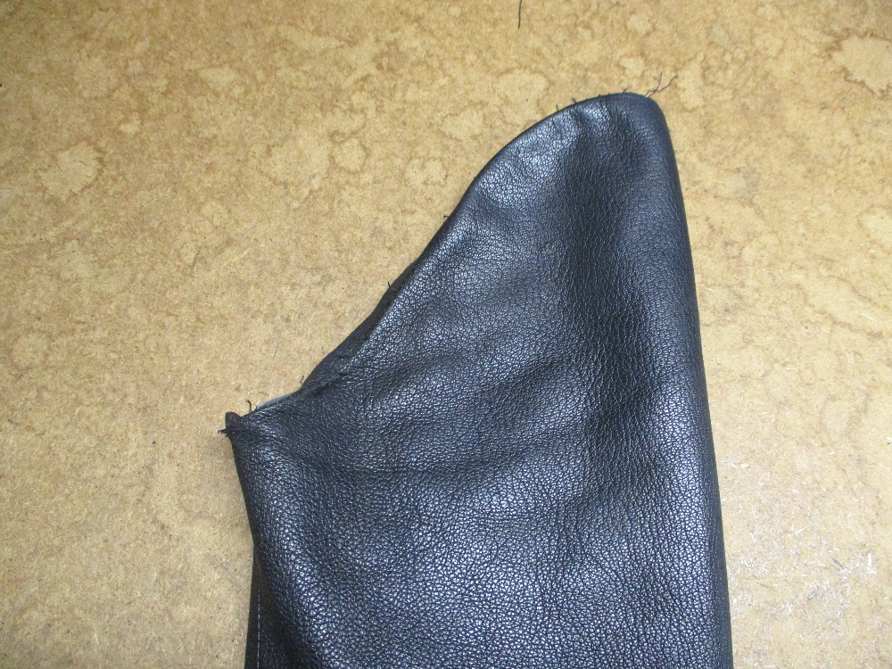 4枚目は袖山からレザーをカットして袖丈を短くしていきます。