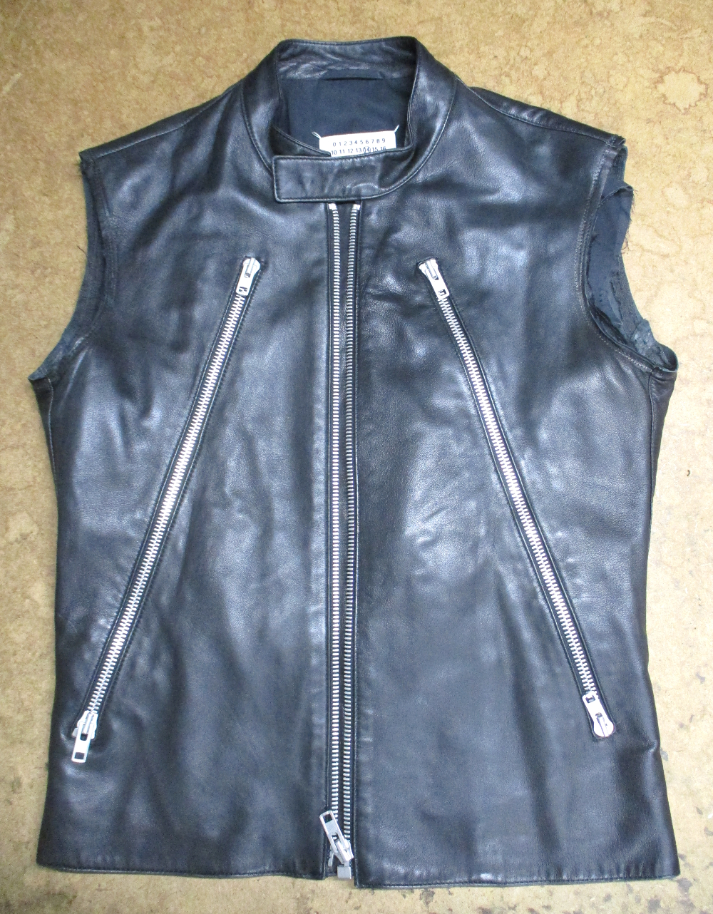 長い袖丈のマルジェラのレザージャケットをお客さんの好みの長さに短くリサイズ