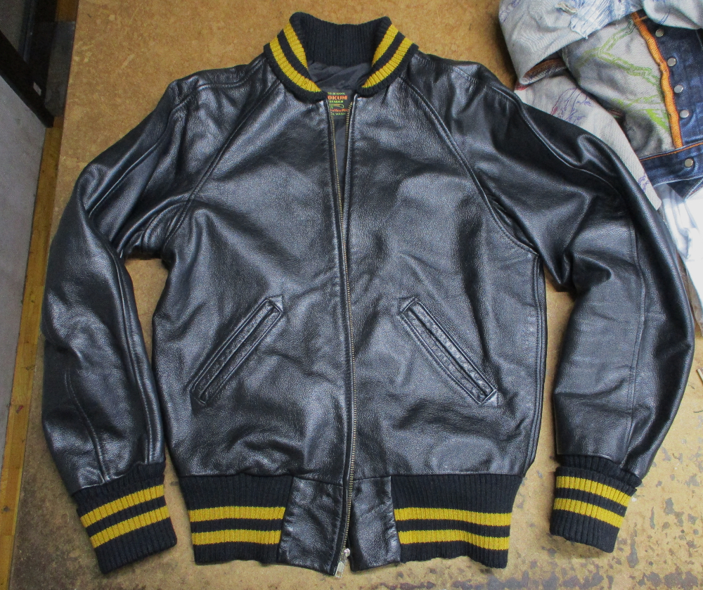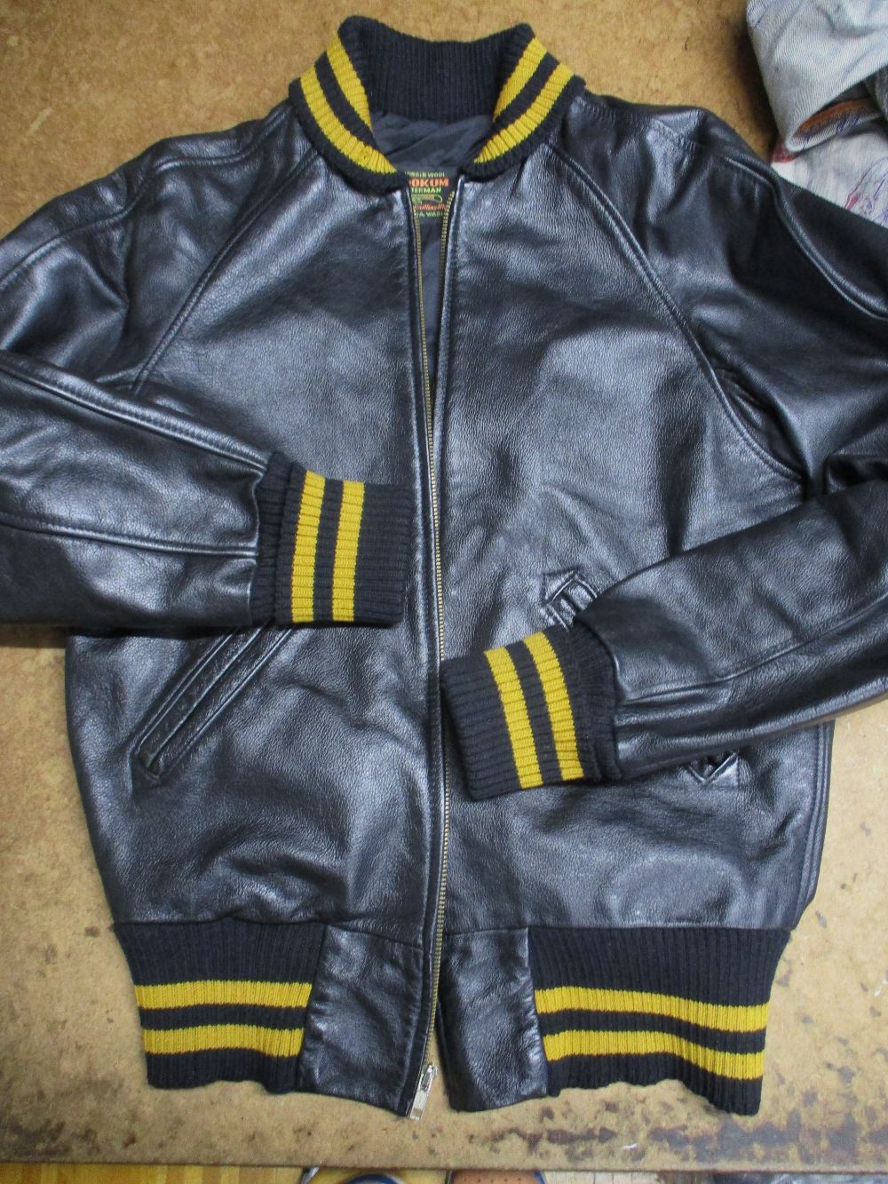 1枚目は神奈川県からの郵送のお客さんの襟、両袖、腰m割のリブニットを交換していく前のスタジャンです。