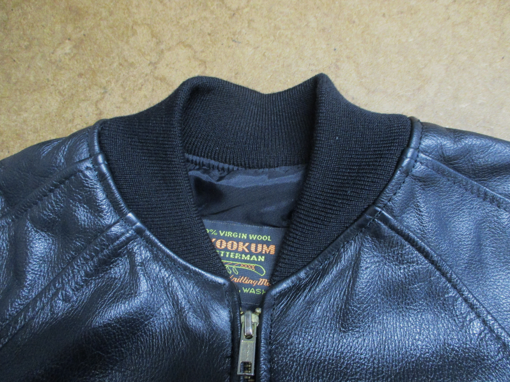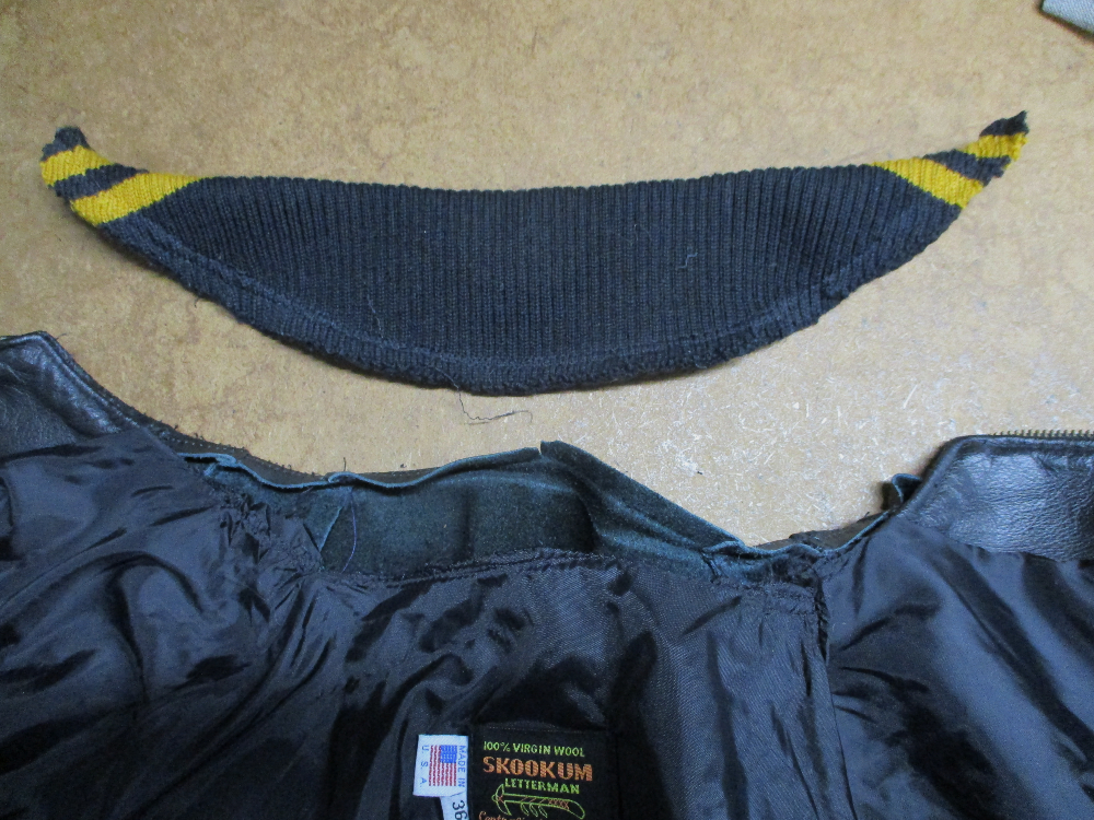 16枚目はスタジャンに新しい襟、両袖、腰回りのリブニットを取り付けた写真です。
