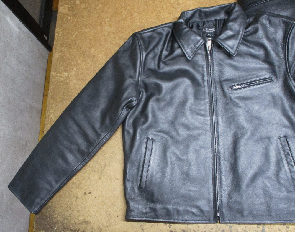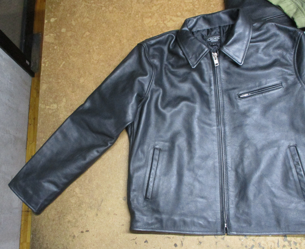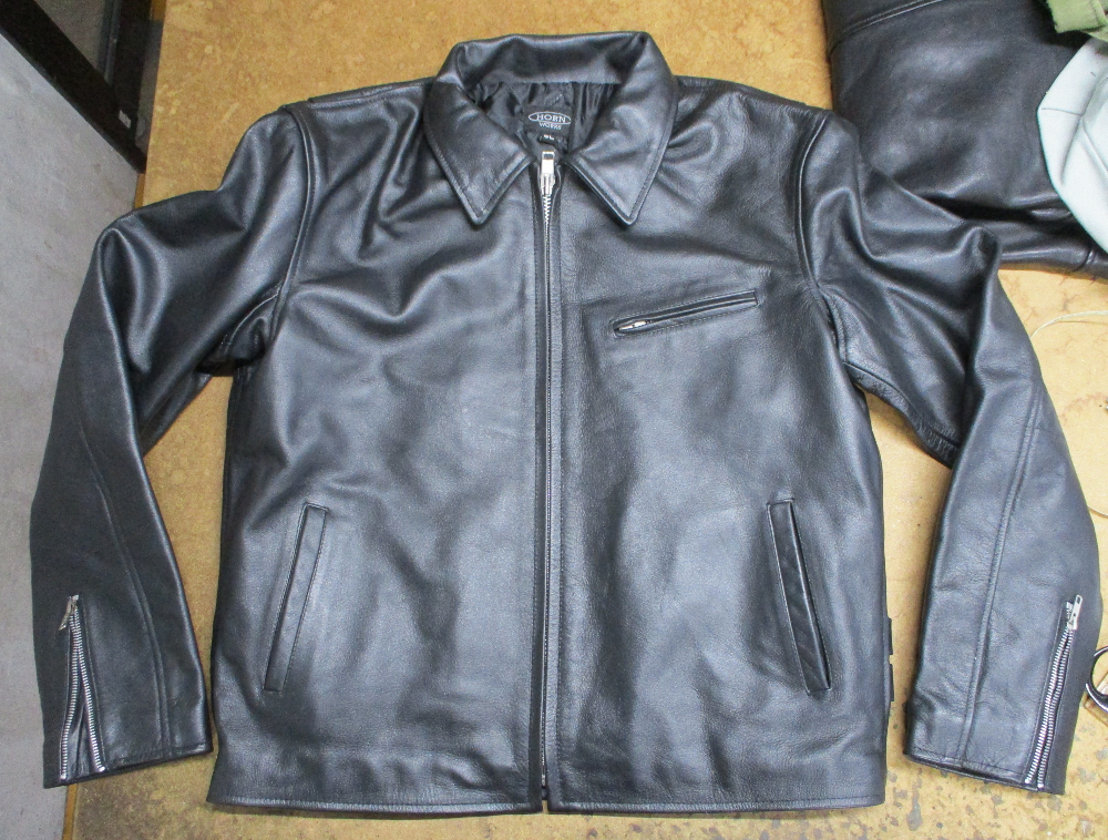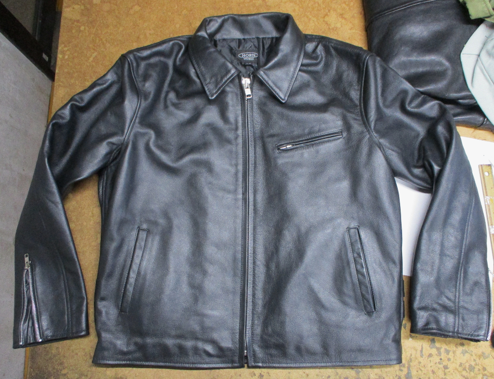 1枚目は福岡県からの郵送のお客さんの長い袖丈を短くしていく前のレザージャケットです。