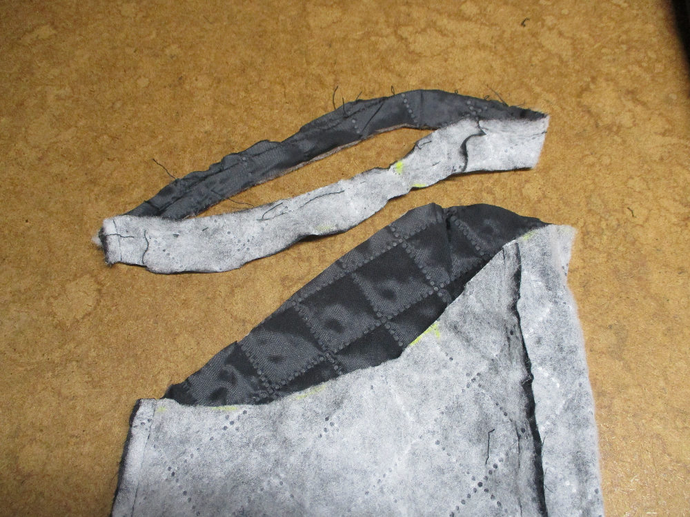 13枚目は袖山の生地をカットした後に脇のパーツを組み直した写真です。