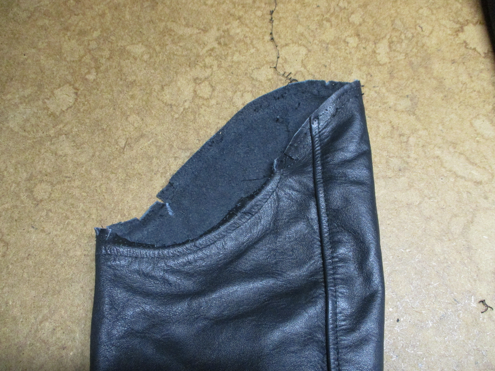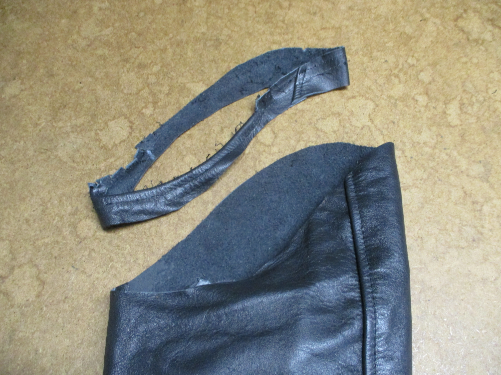8枚目は袖山からレザーをカットした後に脇のパーツを組み直した写真です。