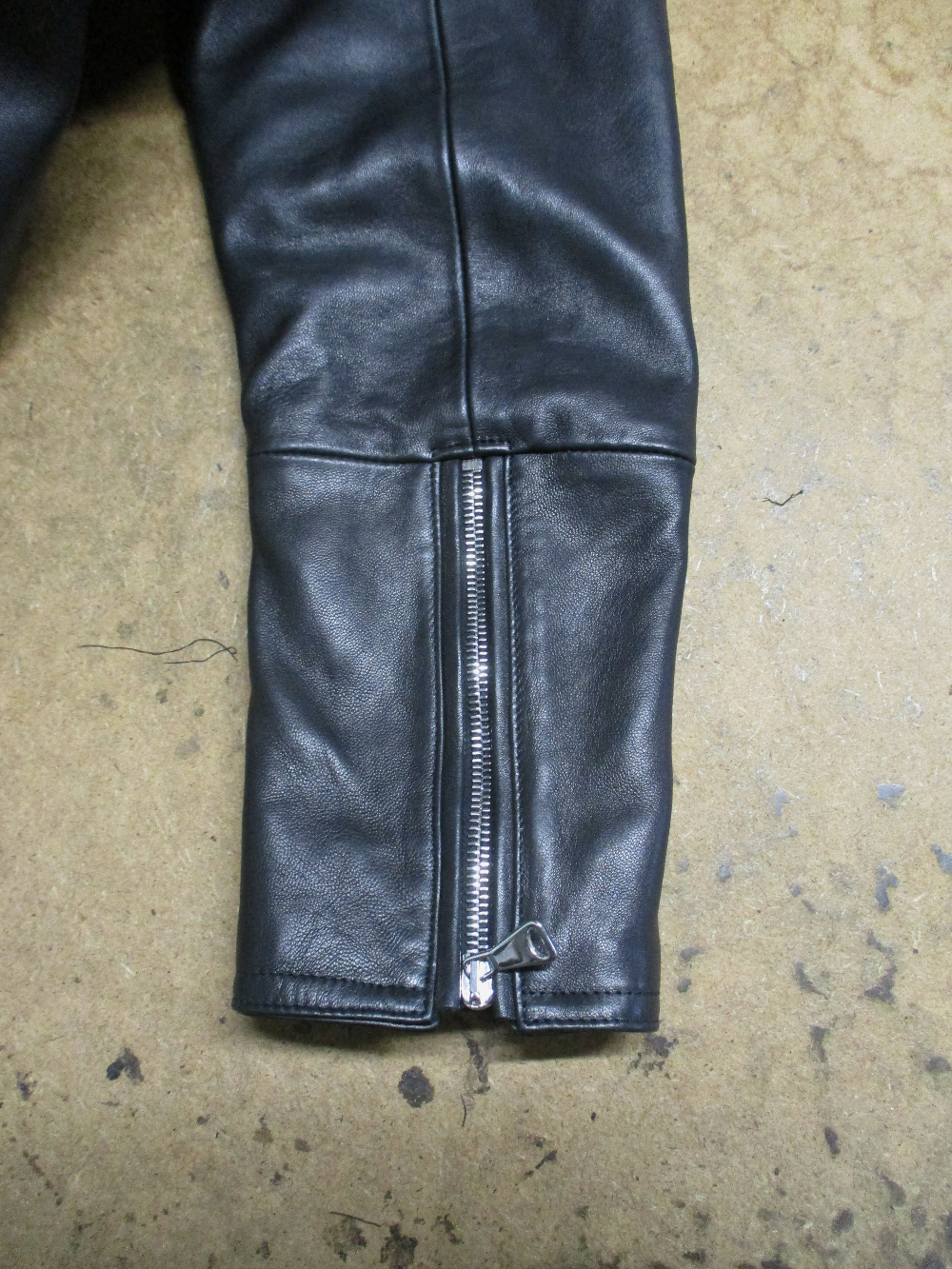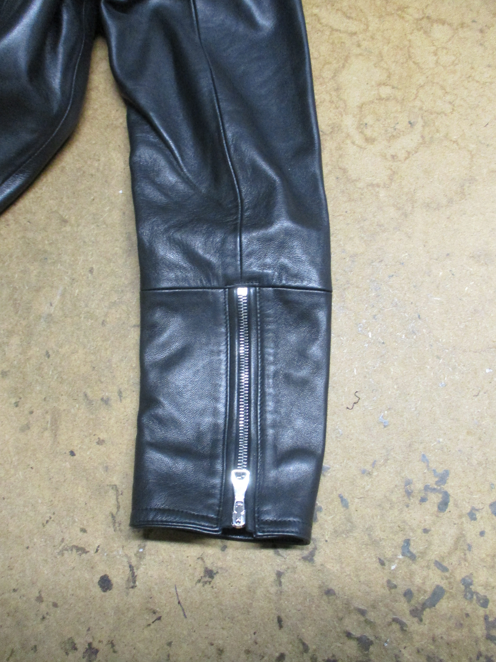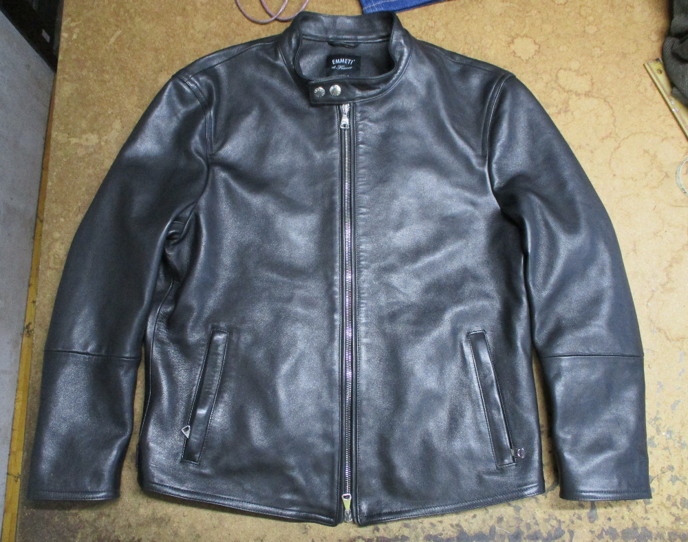 13枚目は14枚目との比較で袖先から袖丈を短くしていく前のレザージャケットです。