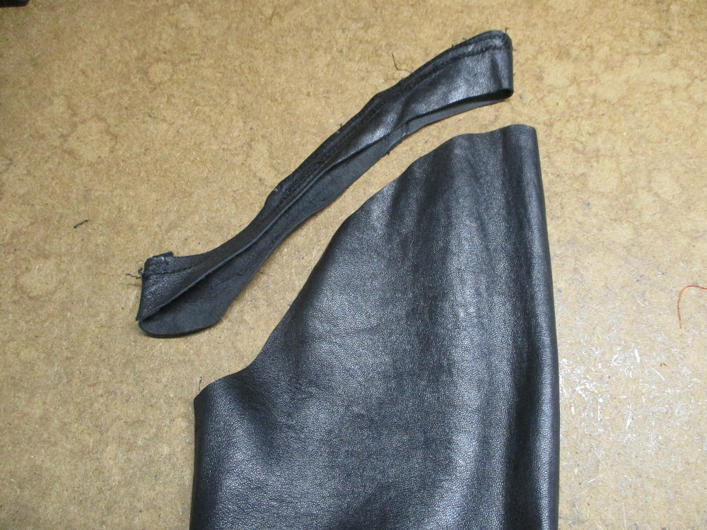4枚目は袖山からレザー部分をカットして袖丈を短くしていきます。