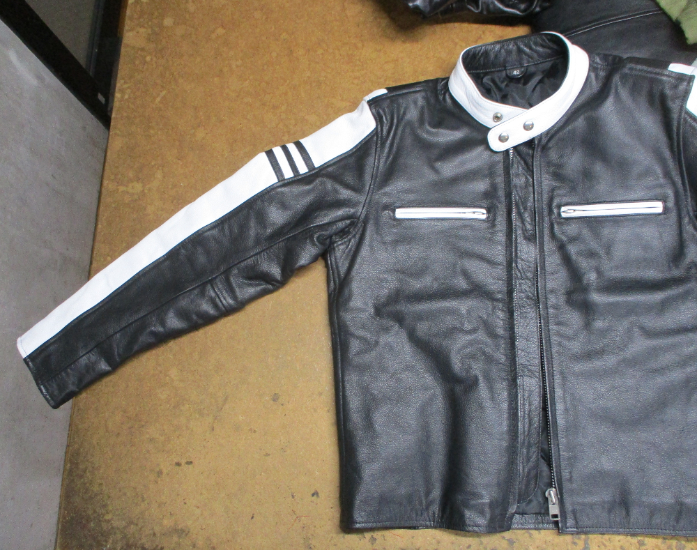 12枚目は13枚目との比較で袖丈を肩口から短くしていく前のレザージャケットです。
