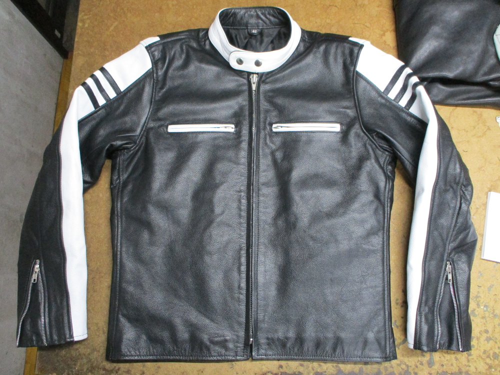 13枚目は肩口から袖丈を4㎝短くしたレザージャケットです。