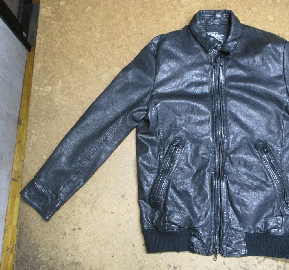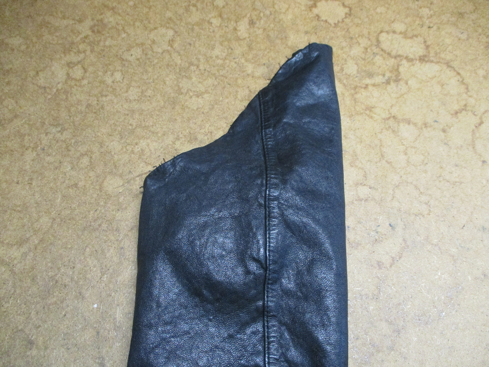 1枚目は神奈川県からの郵送のお客さんの長い袖丈を短くしていくレザージャケットです。