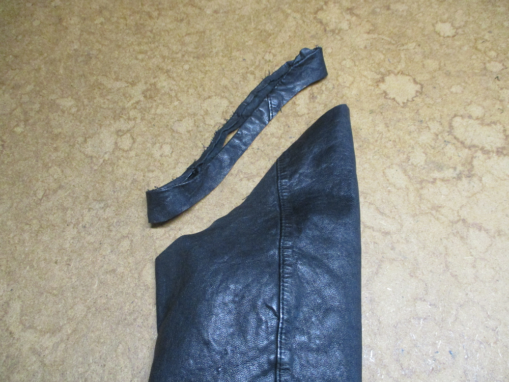 4枚目は袖山からレザー部分をカットして袖丈を短くしていきます。