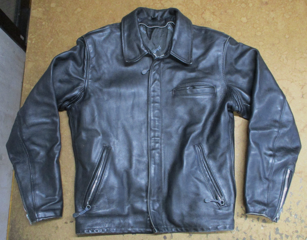 1枚目は静岡県からの郵送のお客さんの袖丈を短くしていく前のレザージャケットです。