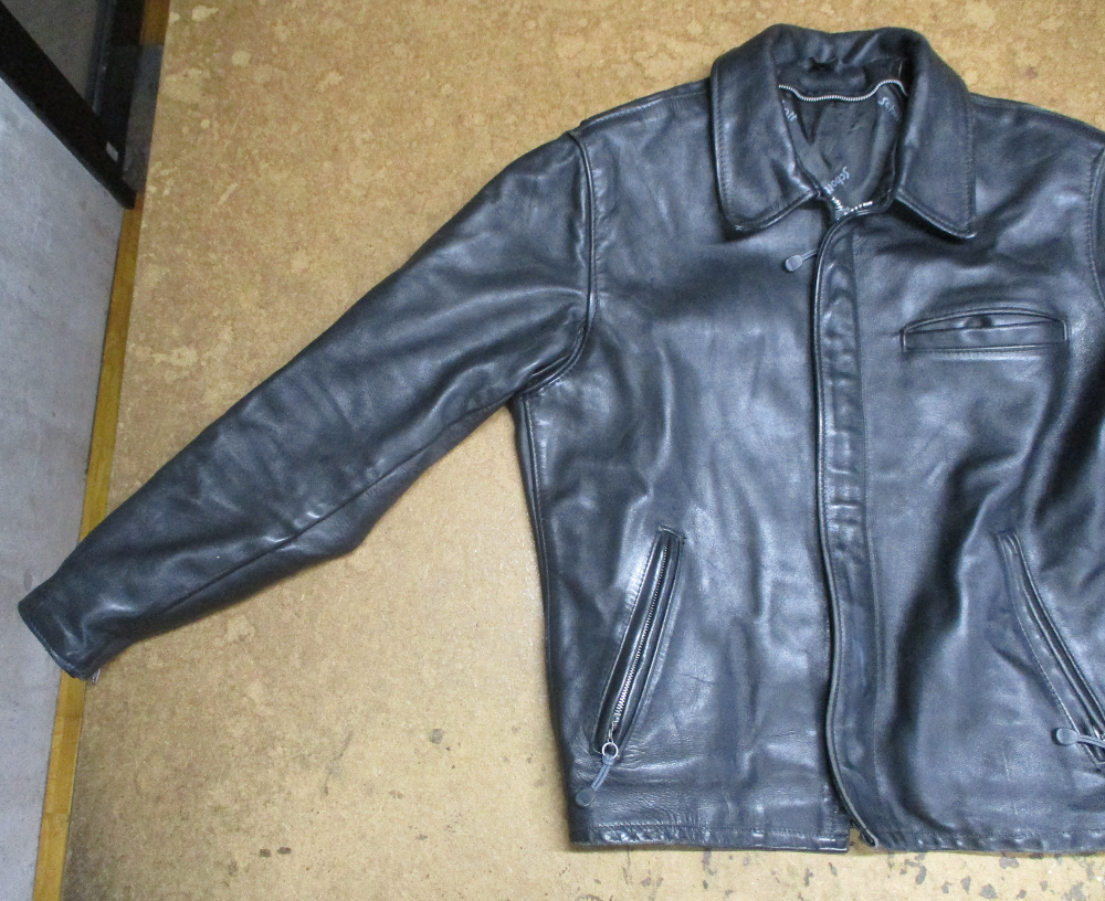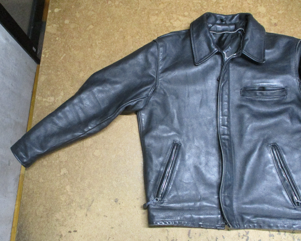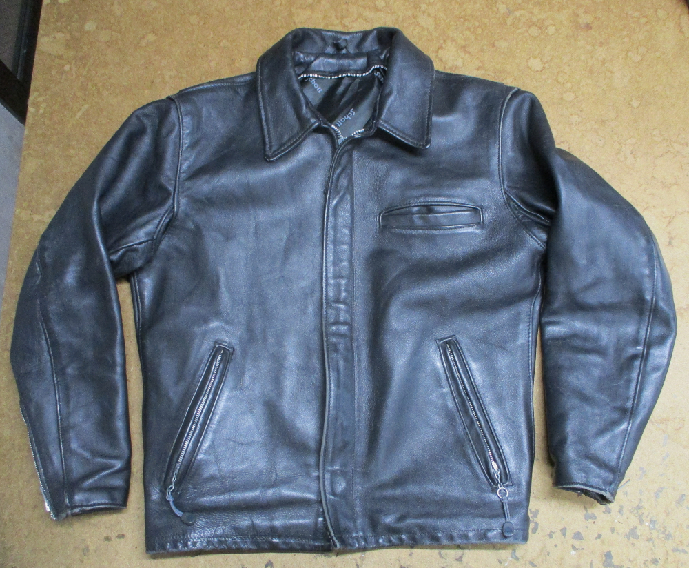 14枚目は15枚目との比較で袖丈を短くする前のレザージャケットです。