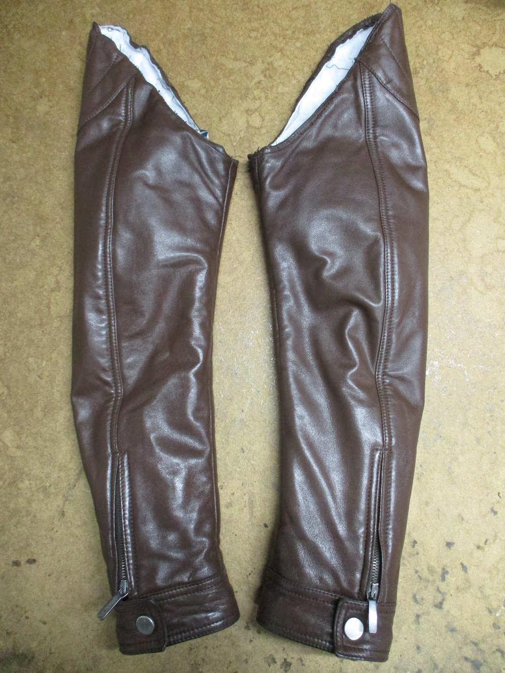 7枚目は裏地の袖山の生地を表のレザー部分と同じ長さをカットした写真です。