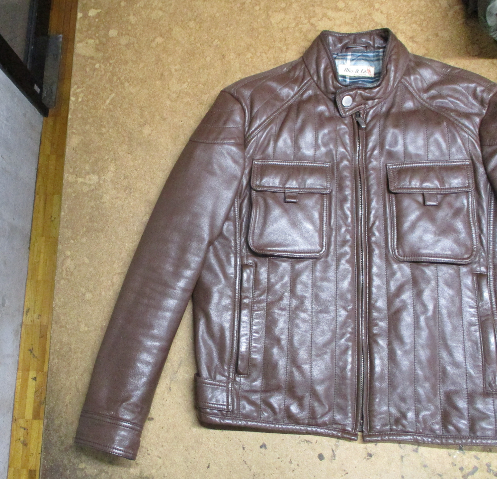8枚目は9枚目との比較で袖丈を短くしていく前のレザージャケットです。