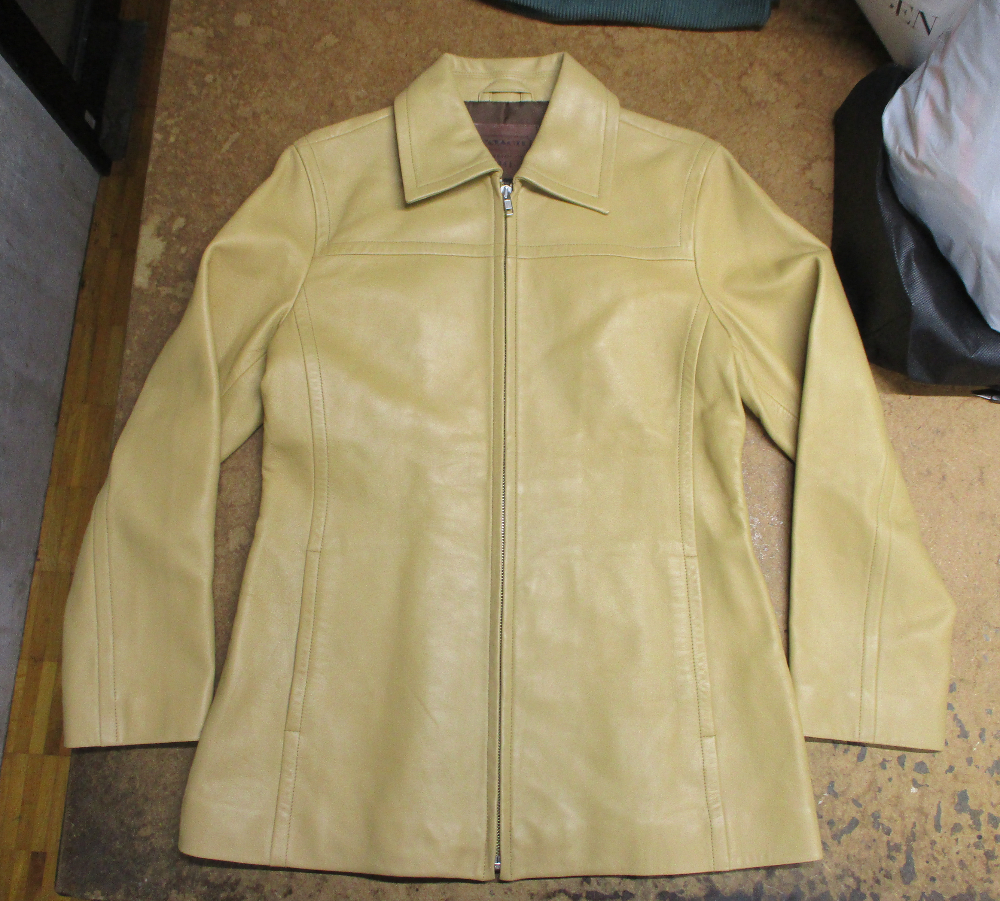 1枚目は東京都から郵送のお客さんの着丈を短くしていく前のレザージャケットです。