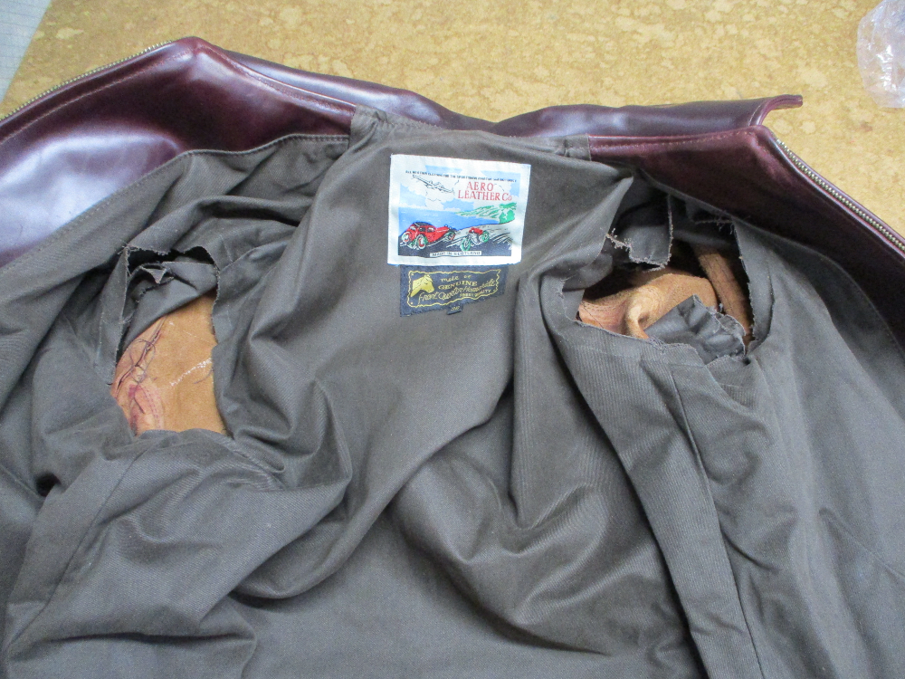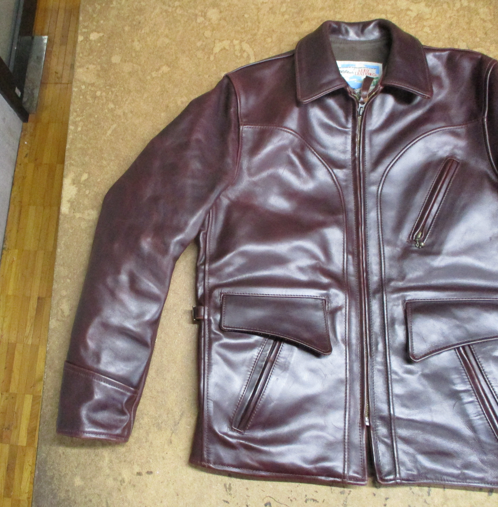 1枚目は来店されたお客さんのサイズを小さくしていく前のエアロレザーのジャケットです。