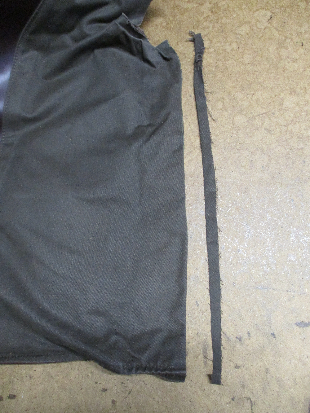 2枚目は裏地側と表の脇から裾のサイドを細くしていきますので裏地のアームホールの縫い目をばらした写真です。