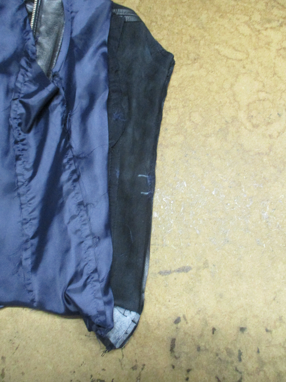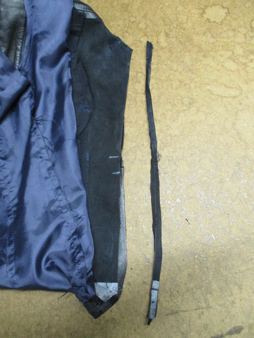 5枚目は脇から裾のサイドのレザーをカットした写真です。