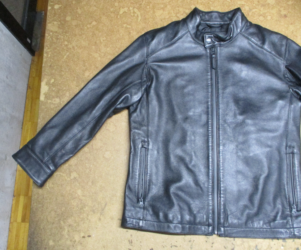 1枚目は来店されたお客さんの袖丈を短くしていく前のレザージャケットです。