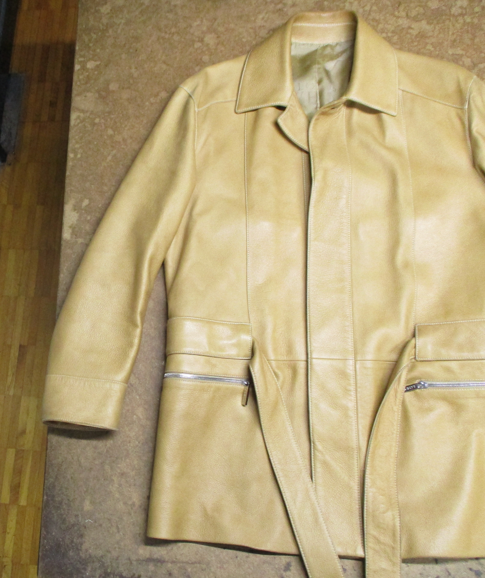 1枚目は来店されたお客さんの袖丈を短くしていく前のレザージャケットです。
