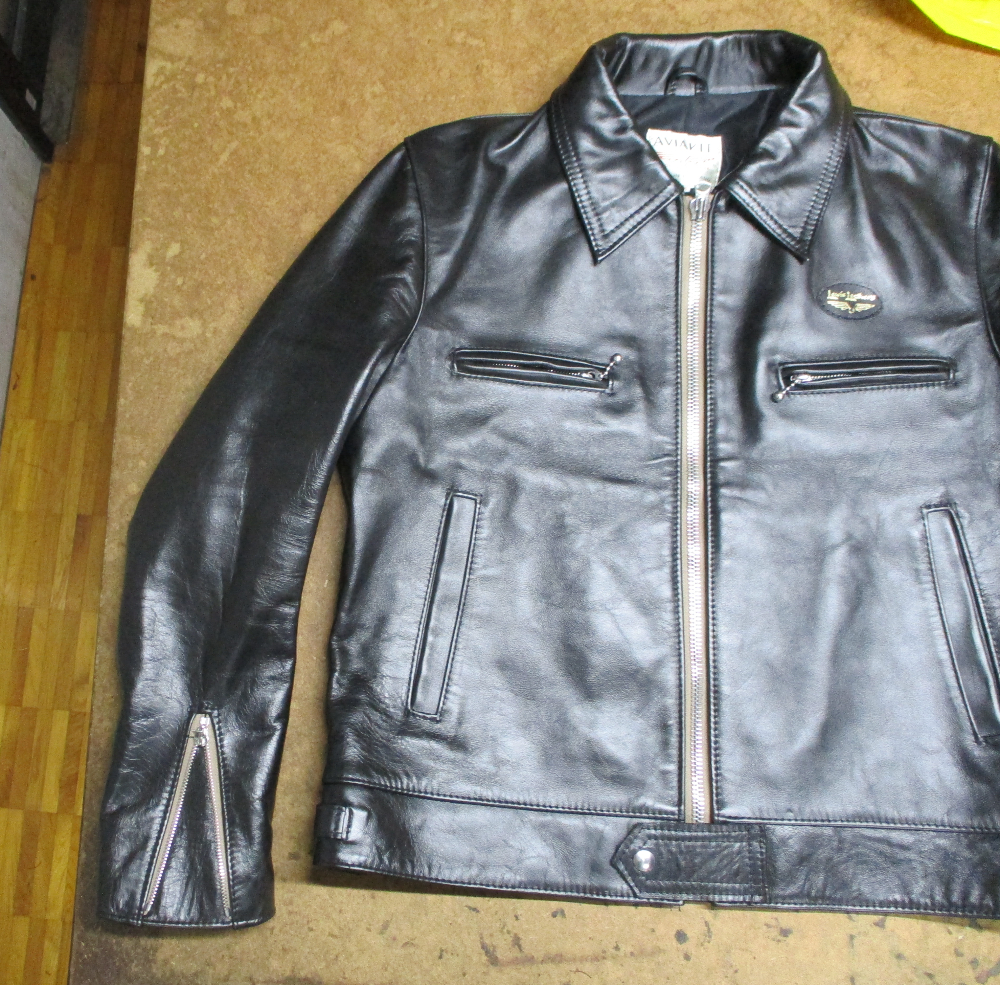 1枚目は来店されたお客さんの長い袖丈を短くしていく前のルイスレザーのジャケットです。
