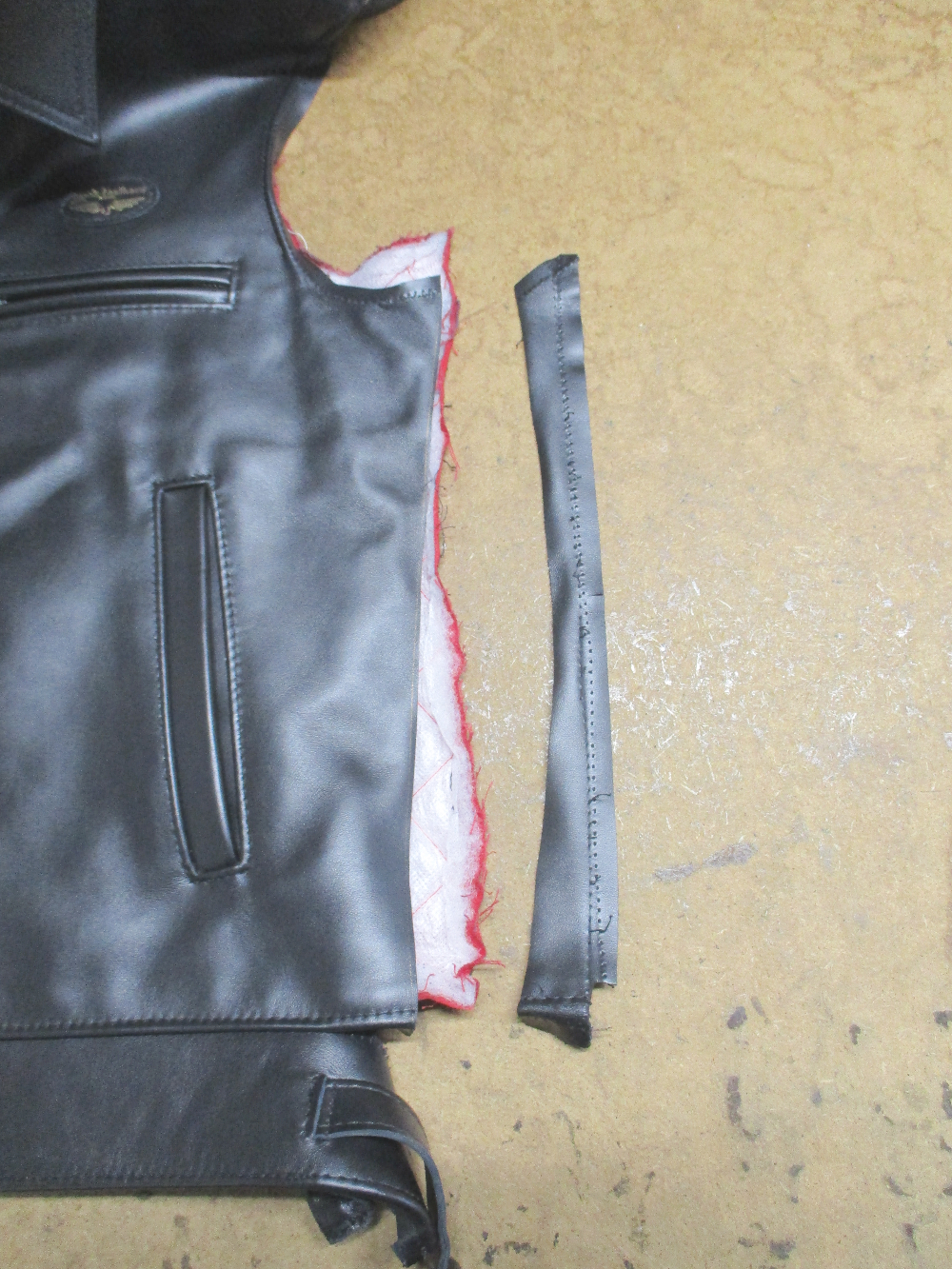 8枚目は脇から裾のサイドのレザーをカットした写真です。