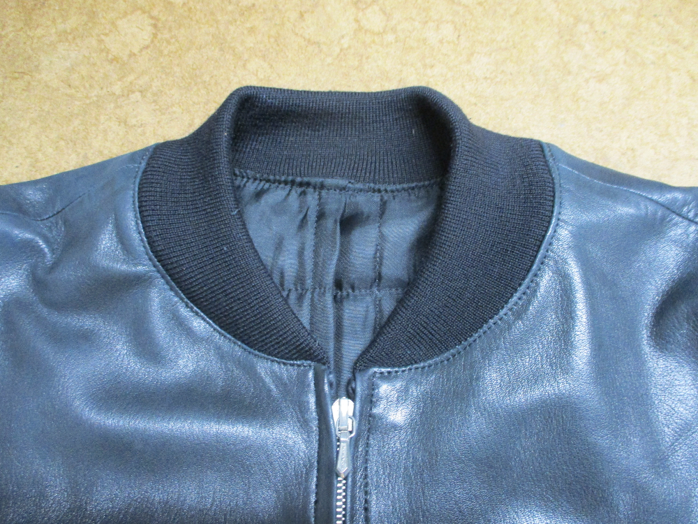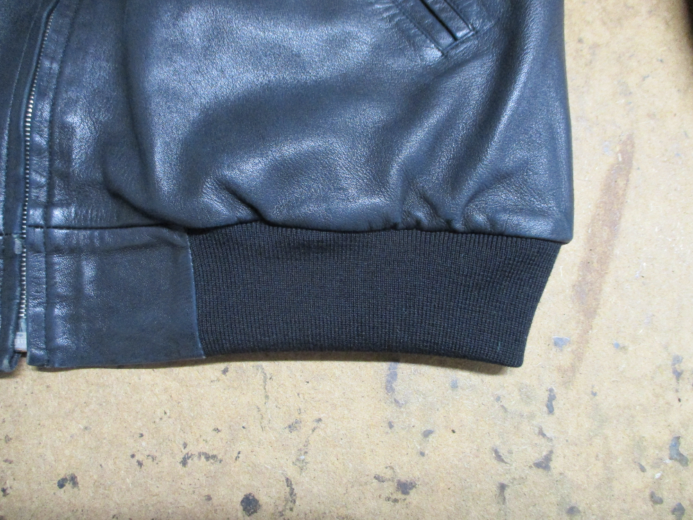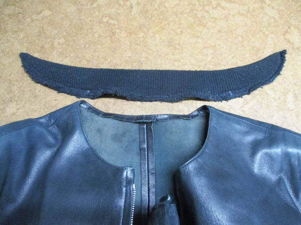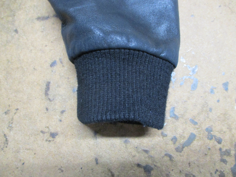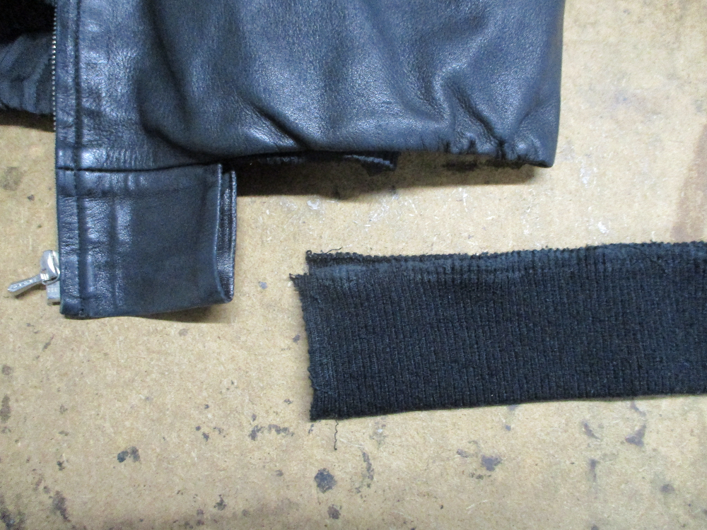 3枚目はレザージャケットの元々付いてる襟、両袖、腰回りのリブニットの写真です。
