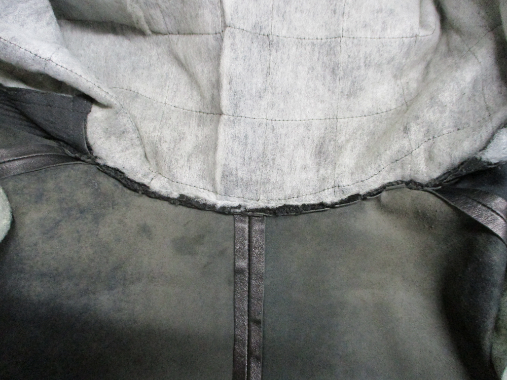1枚目は来店されたお客さんの襟、両袖、腰回りのリブニットを交換していく前のレザージャケットです。