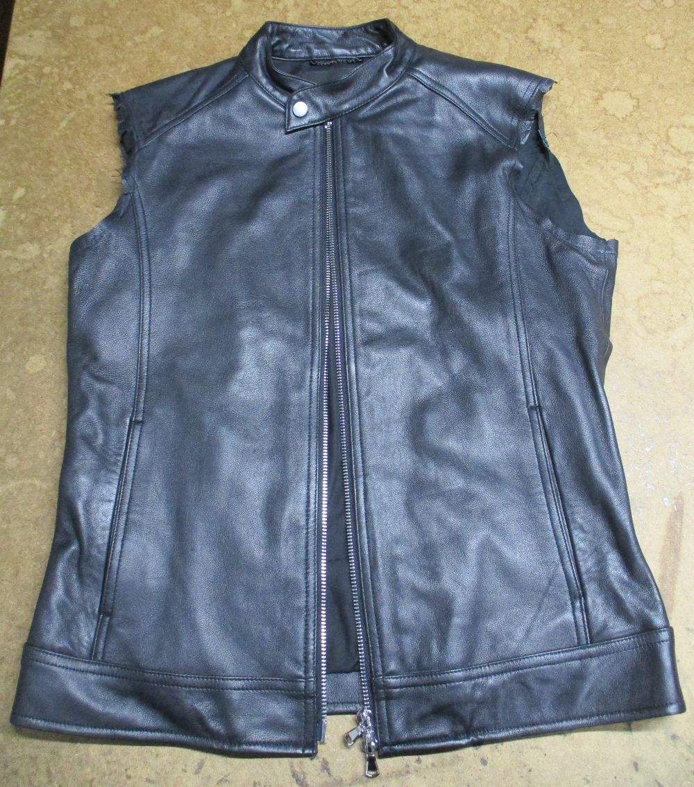 5枚目は袖山のレザー部分をカットして袖丈を短くした写真です。