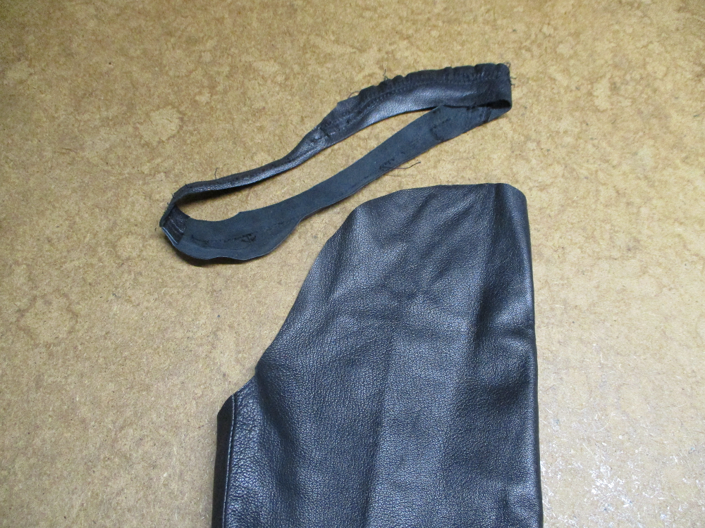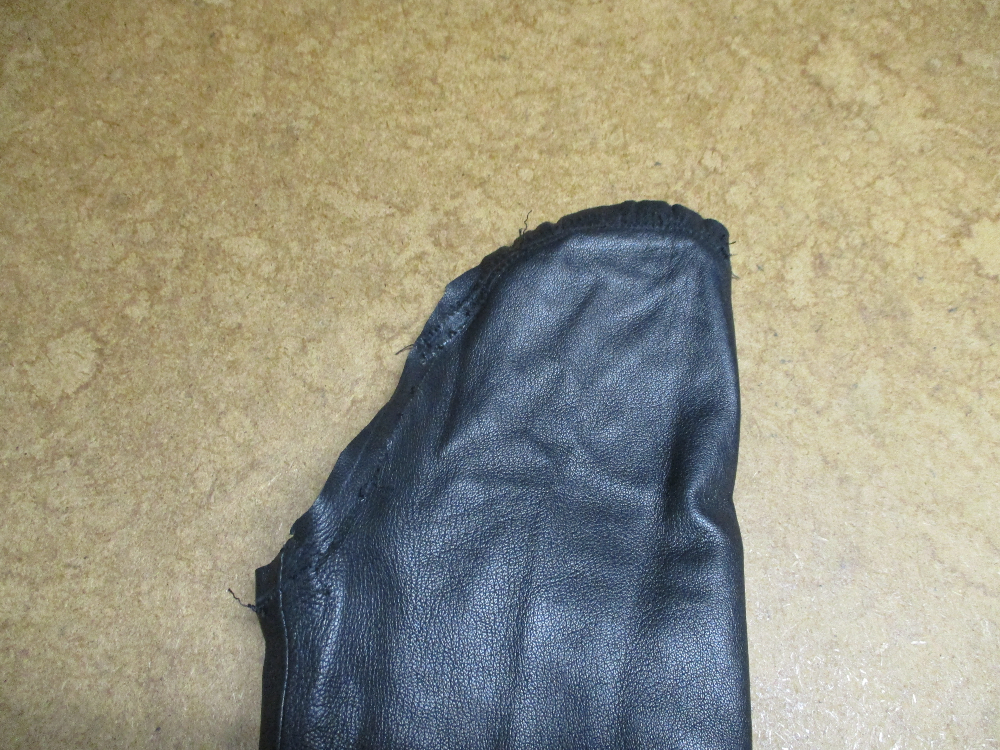 4枚目は表のレザー部分の袖山をカットして袖丈を短くしていきます。