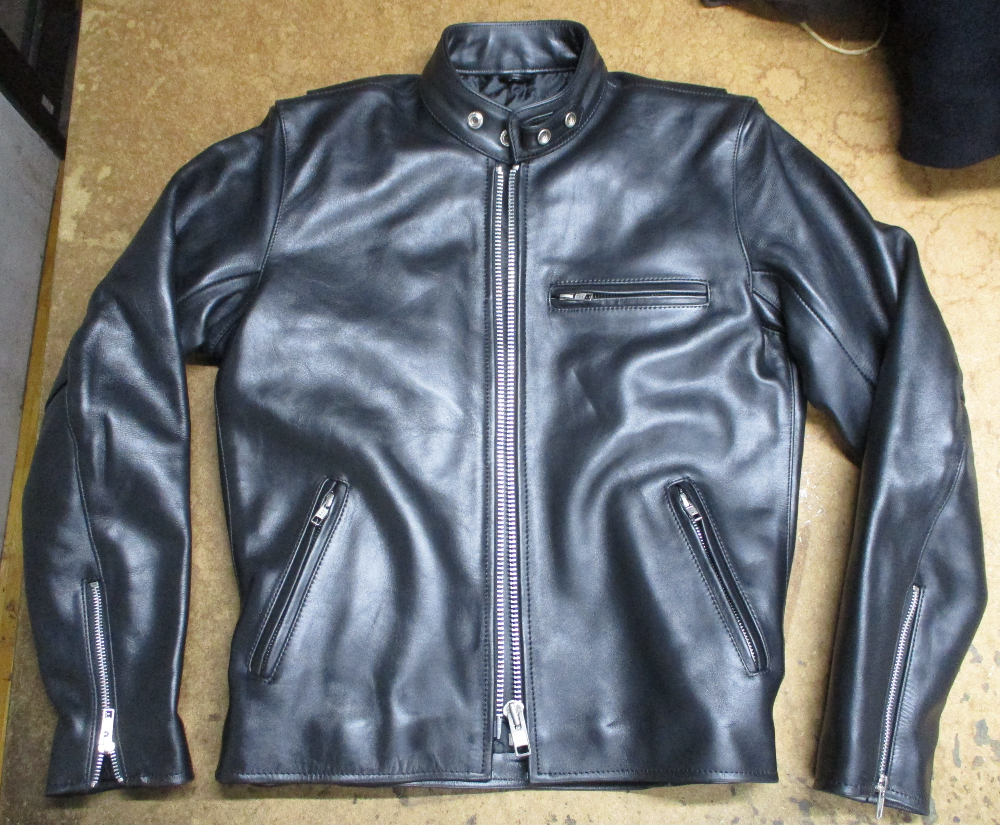 11枚目は12枚目との比較で袖丈を肩口から短くしていく前のレザージャケットです。