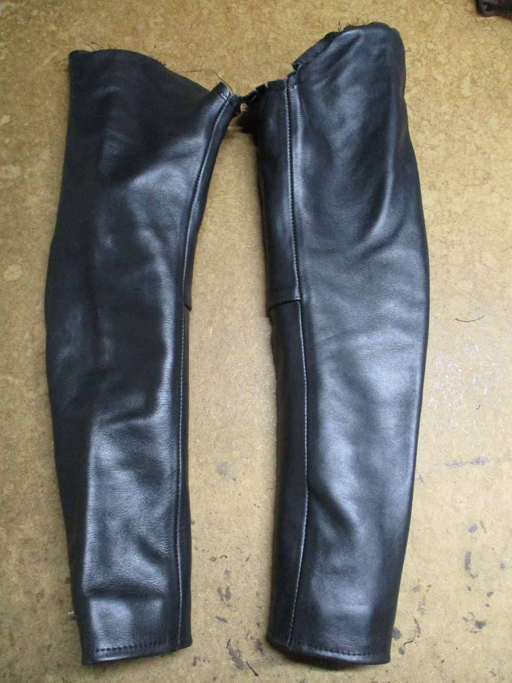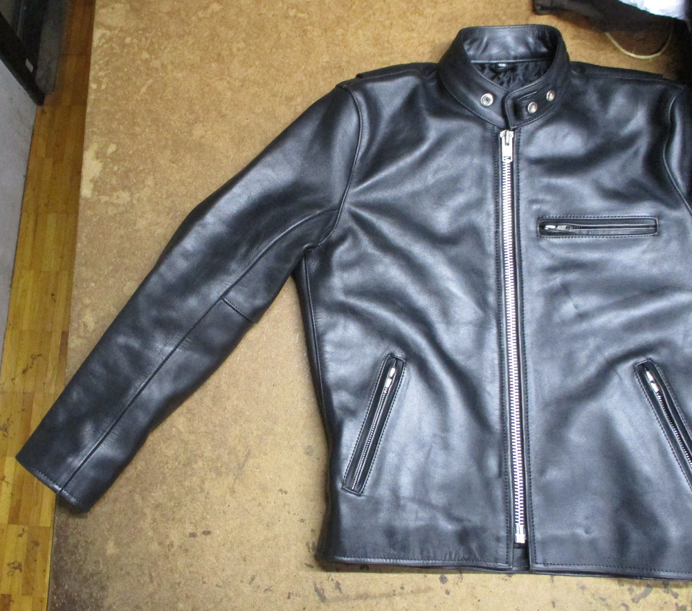 1枚目は京都府からの郵送のお客さんの袖丈を短くしていく前のレザージャケットです。