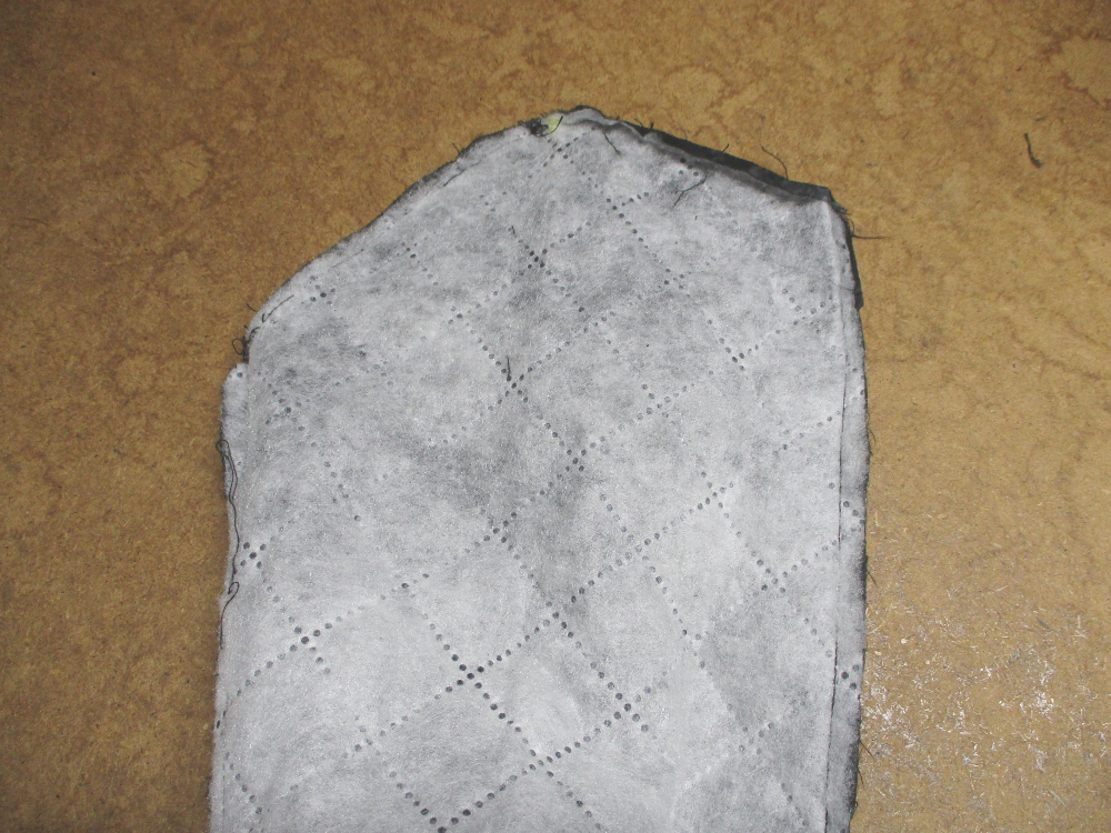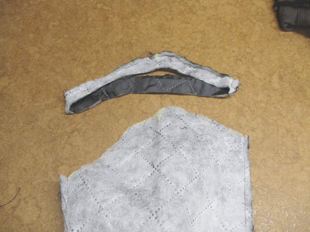 8枚目は裏地の袖山の生地も表のレザー部分と同じ長さをカットしていきます。