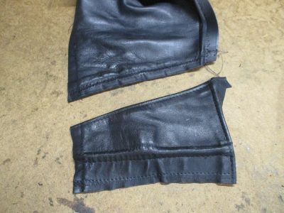 17枚目は外側の袖先のサイドのレザーをカットした写真です。