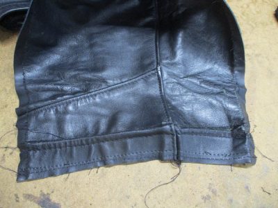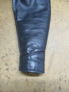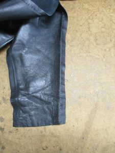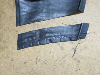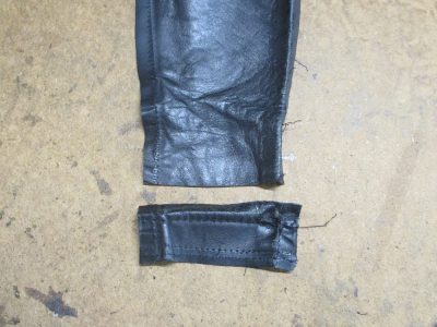 7枚目は表側のレザー部分の袖先の縫い目をばらした写真です。