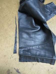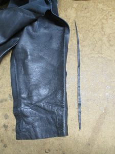 15枚目は袖先の幅を戻すのにサイドのレザーをカットした写真です。