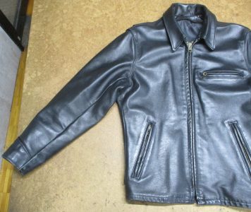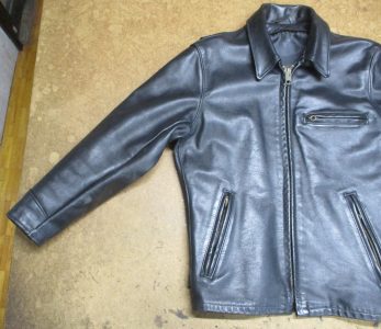 1枚目は神奈川県からの郵送のお客さんの袖丈を短くしていくレザージャケットの写真です。