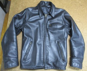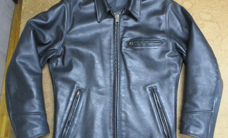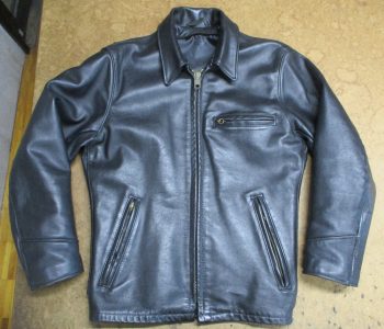 20枚目は21枚目との比較で袖丈を短くしていく前のレザージャケットの写真です。
